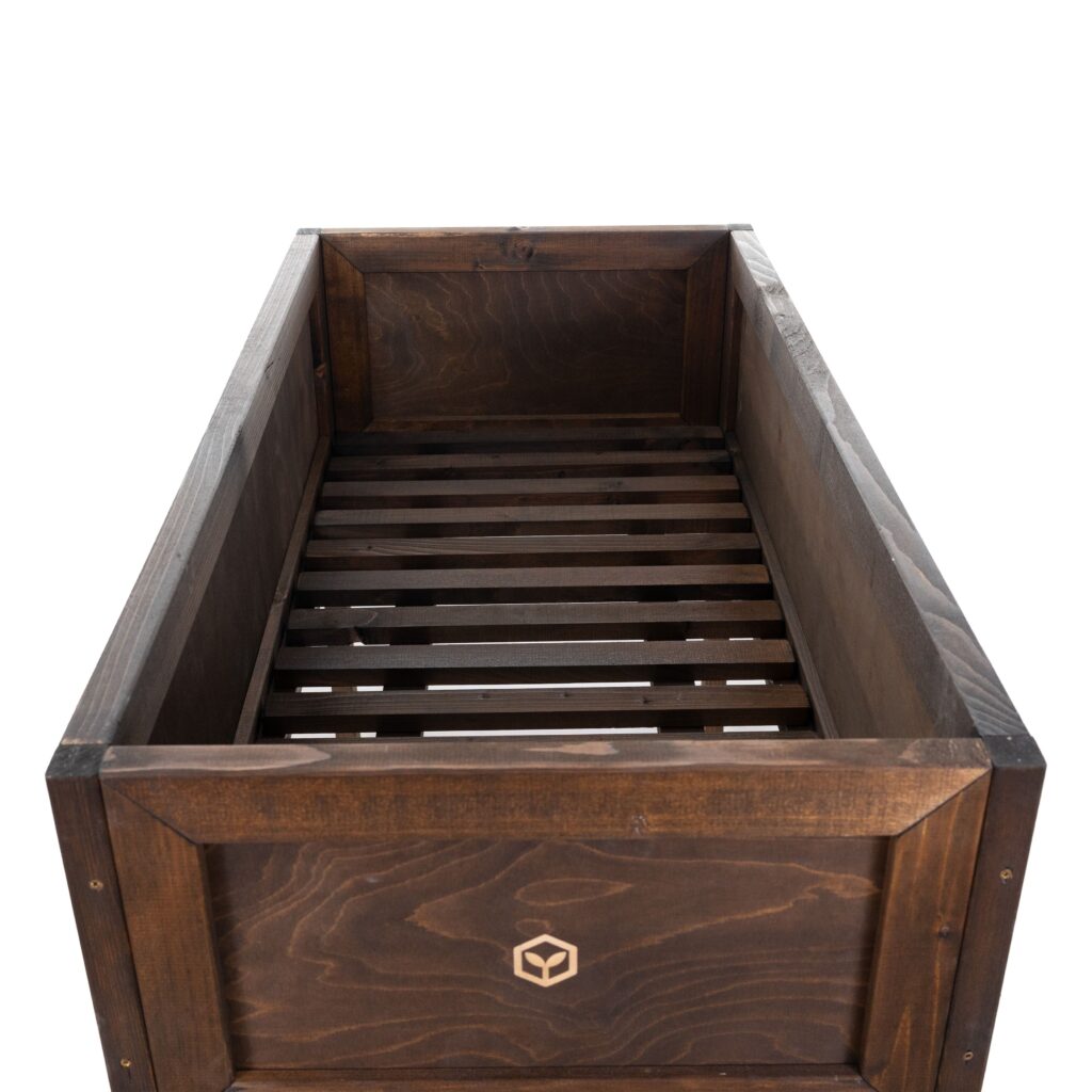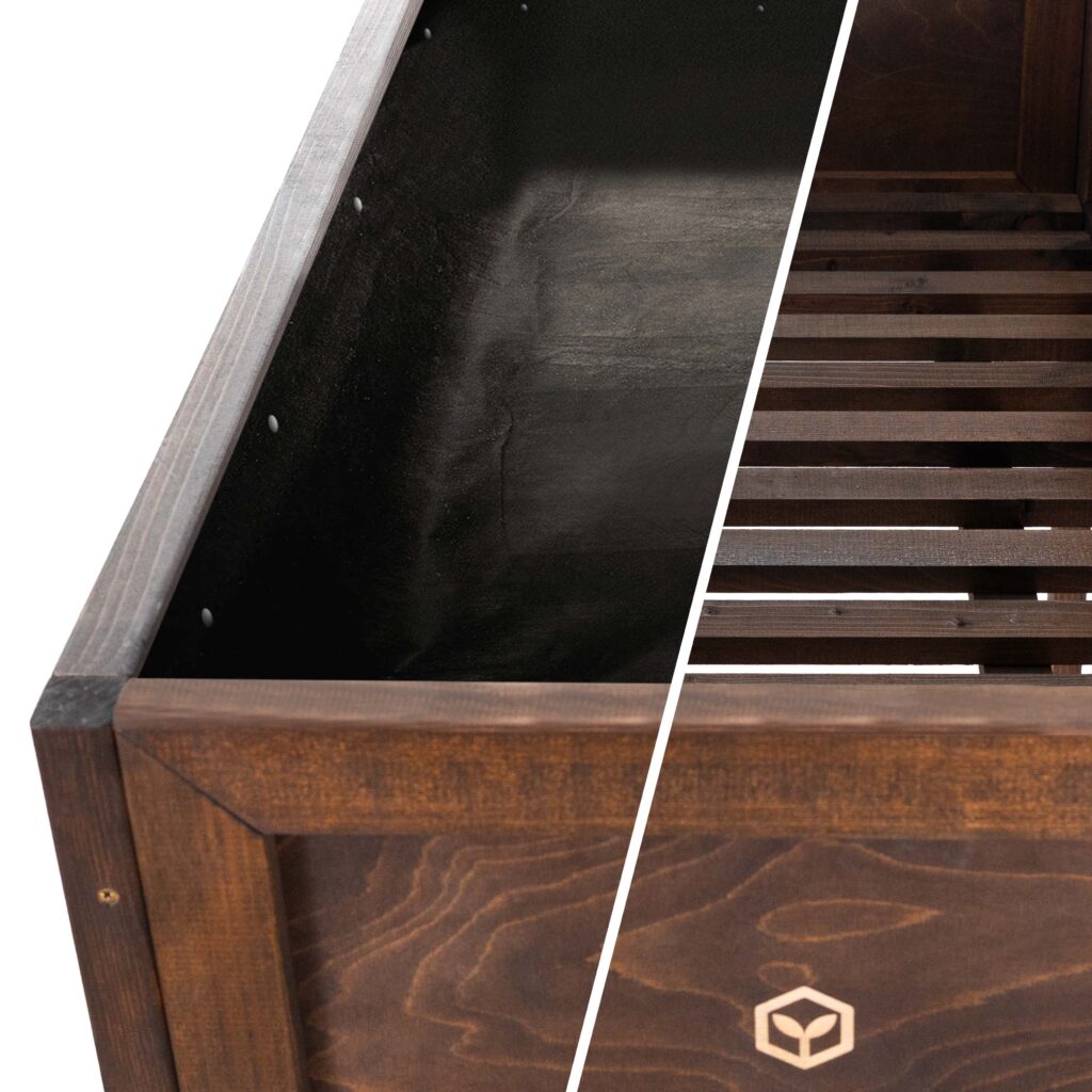Nasze podwyższone grządki na balkon wykonane są z wysokiej jakości impregnowanego drewna świerkowego, które gwarantuje odporność na warunki atmosferyczne, takie jak deszcz, wiatr czy mocne nasłonecznienie. Dzięki temu mamy pewność, że zielnik podwyższony Vintage będzie świetnie wyglądał przez wiele lat.